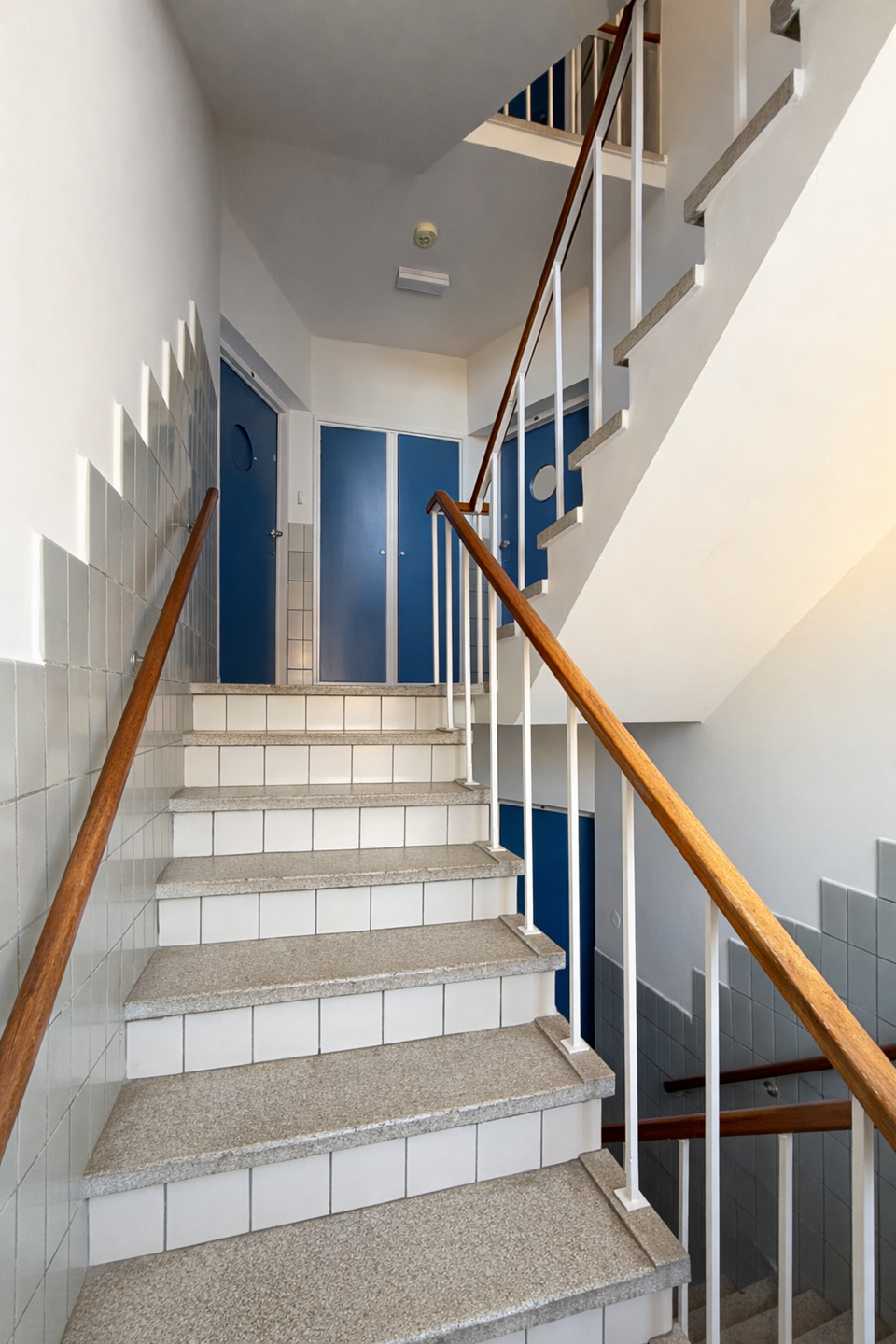 Het portaal op de tweede verdieping wordt maar met één ander appartement gedeeld.
