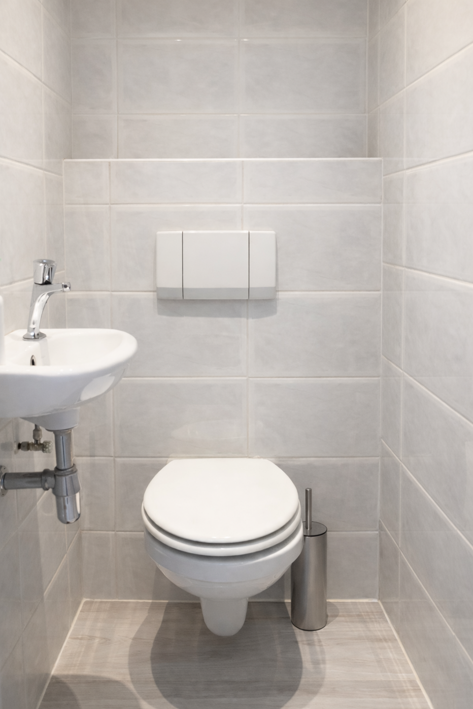 De karakteristieke voordeur geeft toegang tot een ruime hal met inbouwkast en cv-opstelling (2015) en modern betegeld toilet.