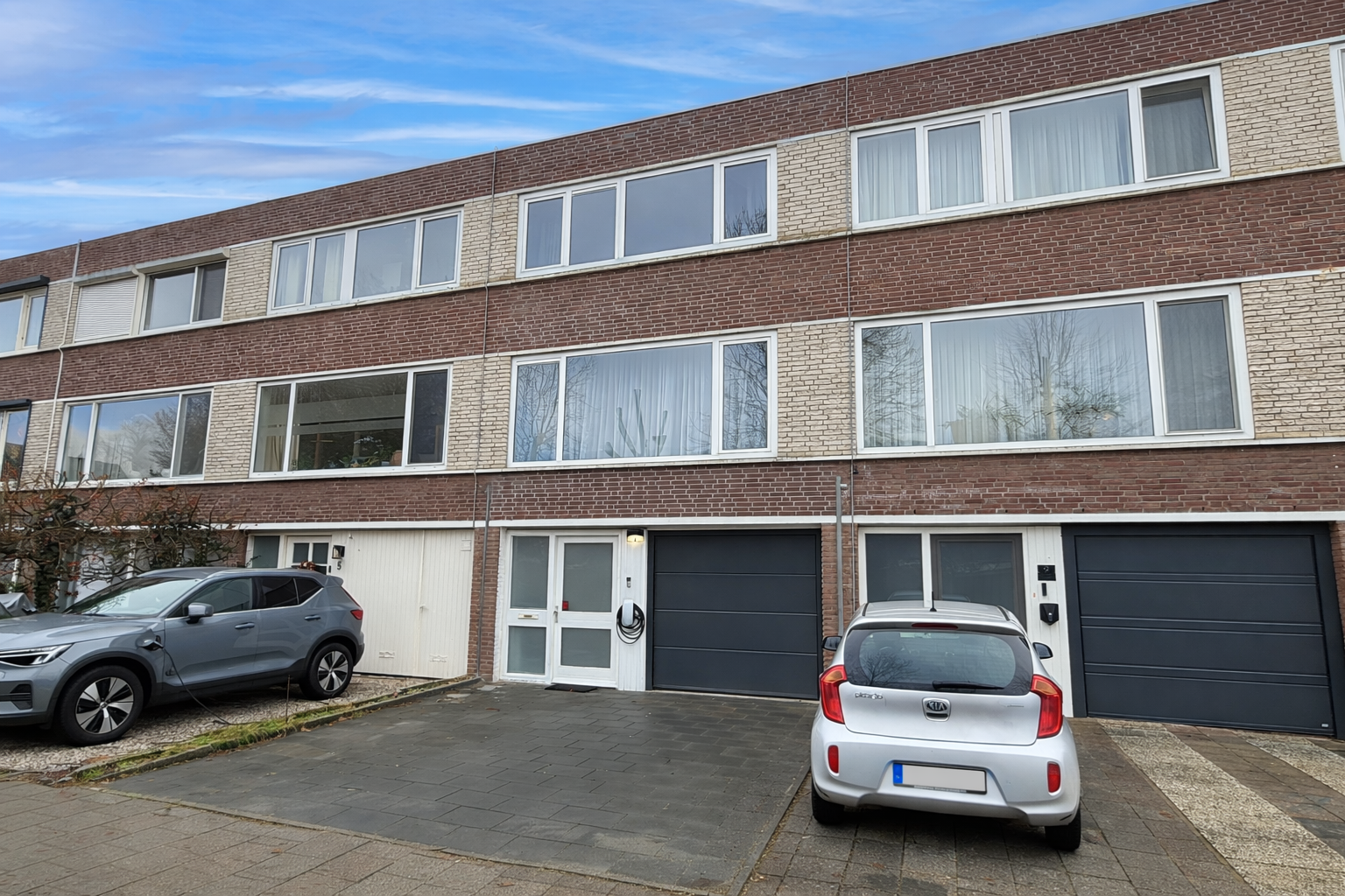 -Eigen oprit voor 2 auto's met elektrische lader, garage en diepe tuin.